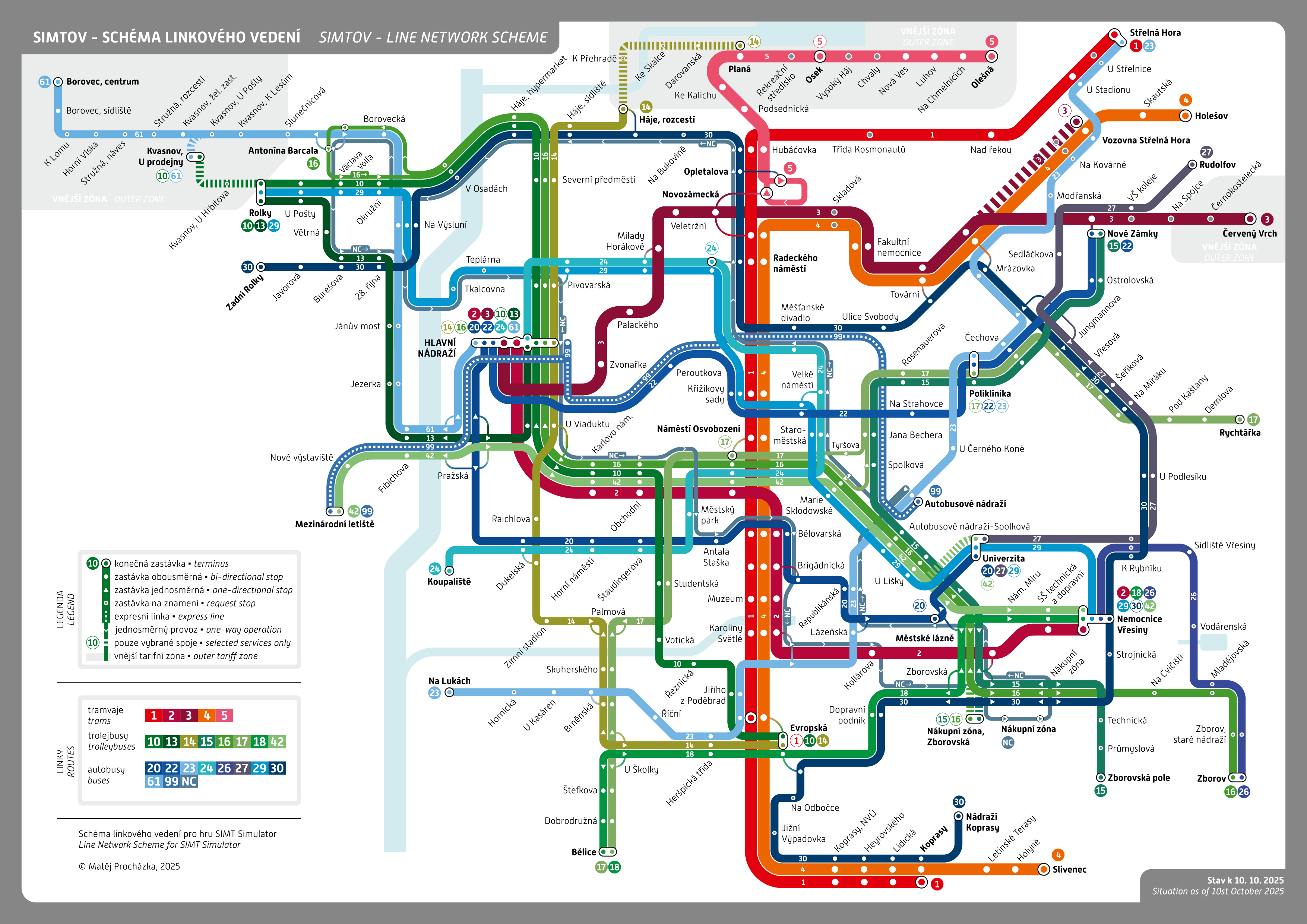 Linky Upravit 🚃 Tramvajové Linka 1 ⇒ Střelná Hora ↔ Koprasy Linka 2 ⇒ Hlavní nadraží ↔ Nemocnice Vřesiny Linka 3 ⇒ Hlavní nadraží ↔ Červený Vrch Linka 4 ⇒ Holešov ↔ Slivenec Linka 5 ⇒ Novozámecká ↔ Olešná Upravit 🚃 Trolejbusové Linka 10 ⇒ Evropská ↔ Rolky Linka 12 ⇒ Nemocnice Vřesiny ↔ Letiště Linka 13 ⇒ Hlavní nádraží ↔ Rolky Linka 14 ⇒ Evropská ↔ Planá Linka 15 ⇒ Zborovská pole ↔ Nové Zámky Linka 16 ⇒ Antonína Barcala ↔ Zborov Linka 17 ⇒ Bělice ↔ Rychtářka Linka 18 ⇒ Bělice ↔ Nemocnice Vřesiny Linka 42 ⇒ Zborovská Pole ↔ Rolky Upravit 🚌 Autobusové Linka 12 ⇒ Nemocnice Vřesiny ↔ Letiště Linka 20 ⇒ Univerzita ↔ Hlavní nádraží Linka 22 ⇒ Hlavní nádraží ↔ Nové Zámky Linka 23 ⇒ na_lukach ↔ Střelná Hora Linka 24 ⇒ Hlavní nádraží ↔ Koupaliště Linka 26 ⇒ Nemocnice Vřesiny ↔ Zborov Linka 27 ⇒ Univerzita ↔ Rudolfov Linka 29 ⇒ Nemocnice Vřesiny ↔ Rolky Linka 30 ⇒ Zadní Rolky ↔ Nádraží Koprasy Linka 41 ⇒ Zborovská pole ↔ Střelná Hora Linka 42 ⇒ Zborovská pole ↔ Rolky Linka 61 ⇒ Hlavní nádraží ↔ Borovec Linka 99 ⇒ Autobusové nádraží ↔ Letiště Linka NC ⇒ Nákupní centrum ↔ Nákupní centrum Upravit